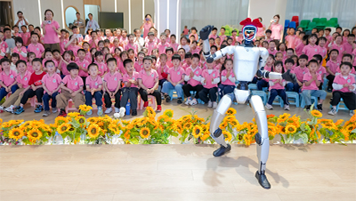 4月24日,2026(第十九届)北京国际汽车展览会正式开幕。亦庄半马冠军荣耀机器人“闪电”,最佳步态奖得主“元气仔”,以及机器人手机Robot Phone一同亮相,并在多家车企展台进行互动。(王刚)